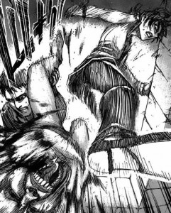 Interesting thing is Shingeki no Kyojin doesn't have stand out chapters; it's consistently great. Unlike say the Big 3, there aren't any chapters you remember for being better than the others or way amazing. Each chapter of this series delivers suspense, plot twists and everything else that makes a story interesting.
