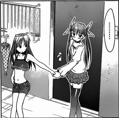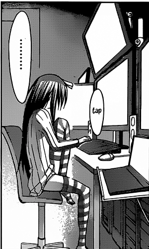 That was pretty much the best part of the chapter. The rest of it was just okay and not that special, though I did enjoy the clich d scenario of a girl being hounded into hanging out with a guy happening in a virtual setting; have they not considered the possibility of it being a guy