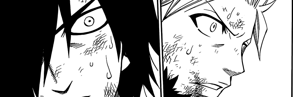 I am glad that this chapter didn't turn to the clich of Natsu and Gajeel being beaten down heavily and then having to rally back by calling upon strength they shouldn't have. In that sense, the part of the chapter where they got up and were ready to kick some more ass followed on nicely from the previous chapter where they dominated like bosses.