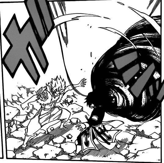 The fights end came about in a slightly different manner than what we're used to. Unlike most fights, where Natsu is struggling until the end, this came to an end rather quickly. It's good to see Natsu win with little effort but the satisfaction I felt when he started to beat the hell out of Sting (in chapter 294) did not resurface.