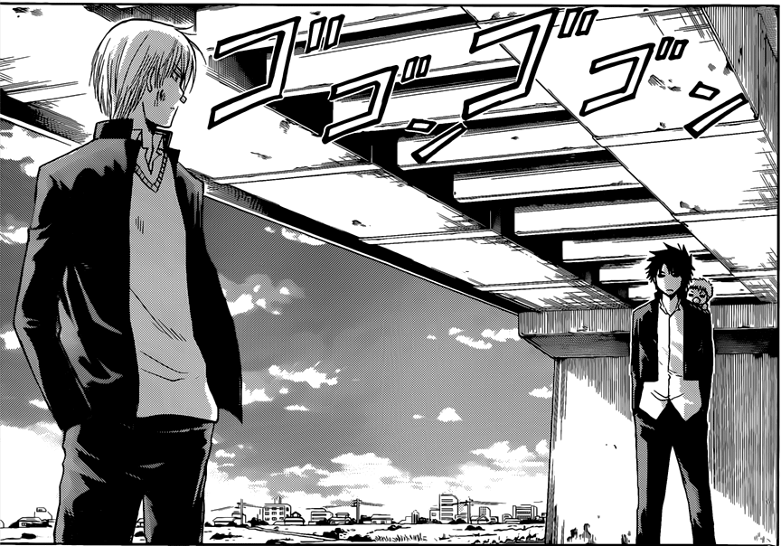 Finally the issue of discrimination was brought up. This has been something that's been touched upon in previous chapters and I've liked how it wasn't made into a big deal but now I can see the potential for it to become an important part of the plot. With this being put into the limelight, we not only got to see Nagisa act completely badass but we also got a new antagonist. Granted, we're introduced to new antagonists every few chapters but that's just Assassination Classroom's style.
