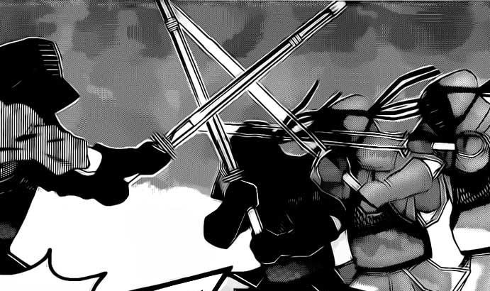 The fight with Ooki for the past few chapters wasn't bad at all. I don't tend to like flashbacks in the middle of fights but I thought it was well done but this chapter was a rather dull pre-ending for an arc that started off strong and gradually declined, something that happens when you spend an entire chapter just to end it on a cliffhanger after one slash. That being said I did like how the audience pointed out that their fight resembled a sword fight more than the other Kendo matches and that the tense atmosphere wasn't just felt by the 2 swordsmen participating.