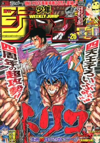 Toriko on the cover of Weekly Shonen Jump. One Piece's anticipated chapter may disappoint some and excite others, Naruto gives an explanation about Izanami, Bleach picks up the pace a little in the long run but hits the brakes in the short run, Beelzebub revisits the romance element of the story and Sensei no Bulge decides it's okay to go along at a much slower pace than the others. Nisekoi is behind in scanlations, so it might be a little while before I can add chapter 26 to the Issue #25 review and possibly the same for chapter 27.