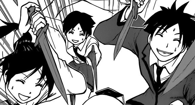 Now I'm not saying the humour is bad but I'm also not supportive of the series continuing on in this manner for much longer, so I'm happy to see it's started to move along and that it is entering its first multi-chapter arc (at least I hope so). This new character will probably end up being the black sheep of the classroom and be won over by Korosensei at some point, a plot that's predictable yet I want to see if it can be done well.