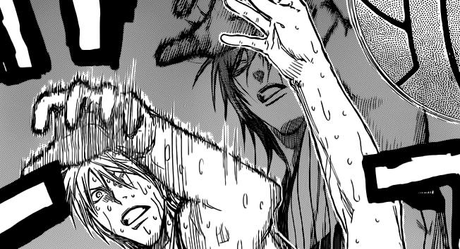 I may be one of the few that was more than peeved with the outcome of this chapter, which ended too quickly and with the victory going to the wrong team. When I say that the wrong team won the game, I'm only saying so based on the events leading up to the conclusion of the game; Haizaki has been built up over several chapters as the bad guy to beat all bad guys in this series, so to have him suddenly loose without putting up much of a fight is more than annoying, just the same as seeing Kise win suddenly without struggling any more.
