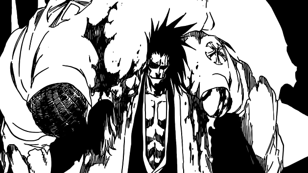 That said, Byakuya's last moments in Bleach were touching and resembled Ginjo's a little. In particular, I liked how he asked for forgiveness in his final moments and then disappeared. Now what followed is an equally important development in this arc but before that happened it only made sense that Renji was stopped accidentally from releasing his bankai. I've been yearning for Kenpachi's re-entry into the story ever since his short-lived appearance in the Fullbring arc where he took out his opponent in one swing and got no other panel time, so having be the focus for the next chapter or two seems like a godsend. This is where the story gets a little more unpredictable...... We know that Kenpachi doesn't have a bankai, making him the best possible opponent (aside from Mayuri) to fight Quincy but he's challenging the King, whose powers have yet to be displayed and on top of that a character who's more befitting as Ichigo's final opponent.