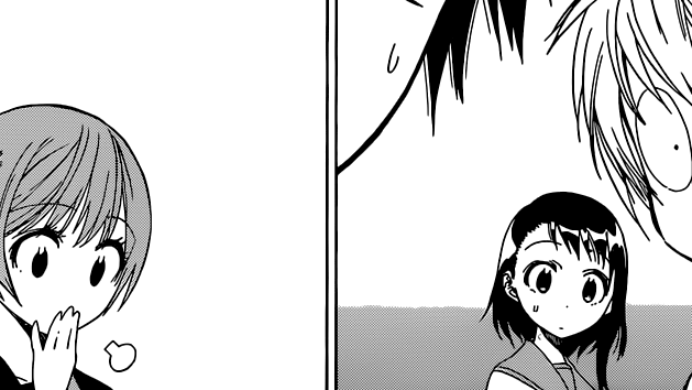 I guess I like this chapter of Nisekoi for the being a defining point in the manga more than anything else. Sure there was all the usual comedy and humour we are used to, coupled with the fantastic facial expressions the characters where (Onodera's white out face is just too funny and adorable) but when Raku definitively stated that he must figure out which of these three girls is the "one," the story can now progress from being all about the comedy and humour to exploring each of the characters and allow for romantic development.