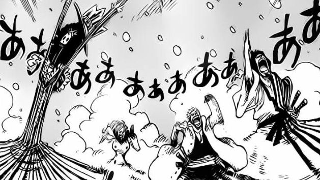With the continuation of Smiley's disease-spreading ways - leaving many mummified - this chapter continued to show us Zoro and Co. as they were running away for the nth time. I don't have a problem with the focus shifting on the quartet who aren't captured but it feel like we've seen them like this too many times. Besides, all that running and they've accomplished nothing Really