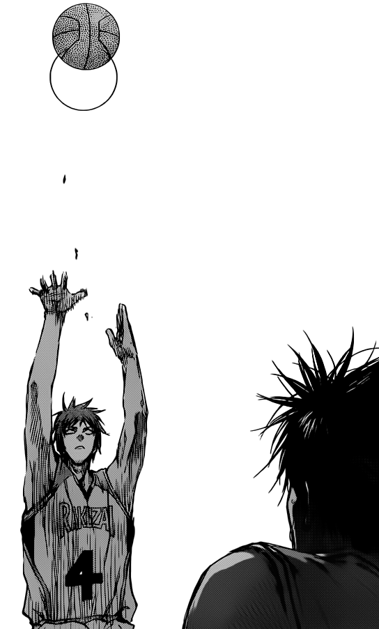 With this chapter it looks like the Rakuzan vs Shutoku match will come to a close soon and then swiftly progress to Seirin vs Kaijou and then probably Rakuzan v Seirin. A formulaic progression but I do hope it's handled better than Akashi's character build-up.
